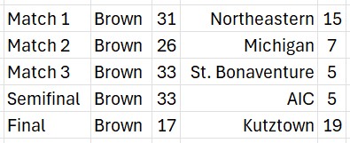 Over five matches, Brown showcased a balanced profile: high-tempo, unpredictable, multi-phase attack led by Edjua, Langford, and King, and a defensive performance that tightened significantly as the day went on. With a deep roster contributing across the board and several underclassmen making key impacts in Quincy, Brown leaves Monumental 7s with four wins, a narrow final loss, and clear momentum heading into the remainder of the spring 7s schedule.